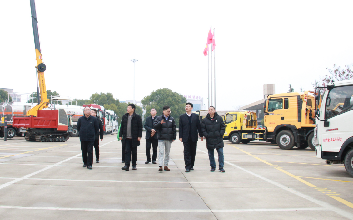張樹中總一行在董鳴勇總及領導班子的陪同下參觀了公司核心車輛展示區,罐式車生產線、自卸車自動化焊接生產線、備料中心自動化生產線以及應急裝備車輛生產線并在會議室進行了交流座談。